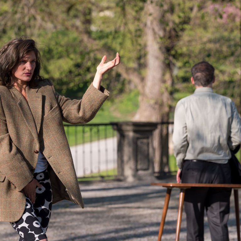 Ernst Jandls „Die Humanisten“ spielt in einer abgehobenen, patriarchalisch dominierten Welt. Zwei Nobelpreisträger - ein „universitäten professor kapazität“ und ein „groß deutschen und indernational Künstler“ - demonstrieren ihre Überlegenheit und beweihräuchern humorvoll ihre Allwissenheit. Ihr intellektueller Humanismus wird zur Fassade der eigenen Machtgeilheit. Laura Naumann stellt sich dem Humanismus anders. In "All the silent ladies, all the silent ladies, now put your hands up" ringen Frauen um Worte zum geschlechterübergreifenden Umgang, zu Macht und Missbrauch, sie befragen sich selbst, sie stellen zur Diskussion und werden still.