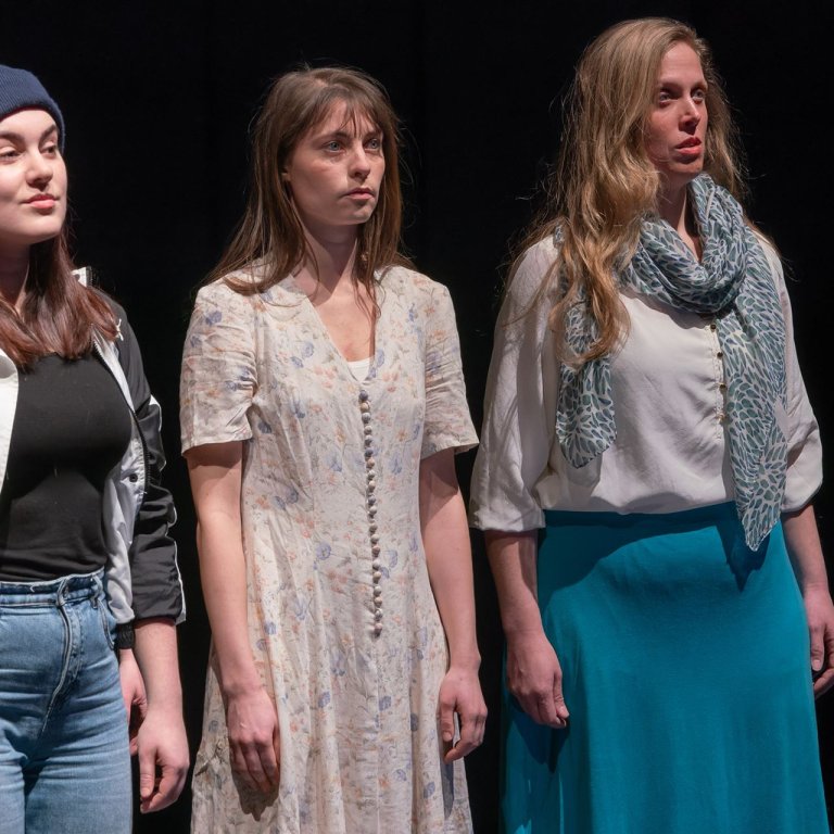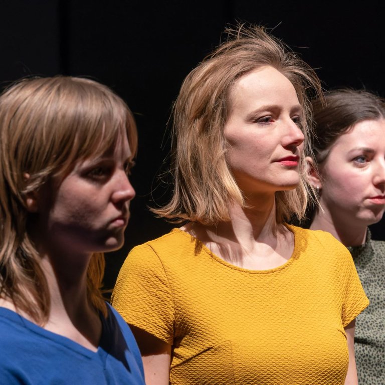 Der Tod als Befreiungs- und Emanzipationszustand. Erst im „sicheren Raum des Sarges“ ist es den jungen Frauen möglich über (Macht)-Missbrauch und Verletzungen zu sprechen. Die Protagonist*innen treten über die Grenzen ihrer Särge hinaus und entdecken die Kraft einer sinnlichen Berührung. Sie finden schließlich im Gesang eine gemeinsame, aktive Stimme.