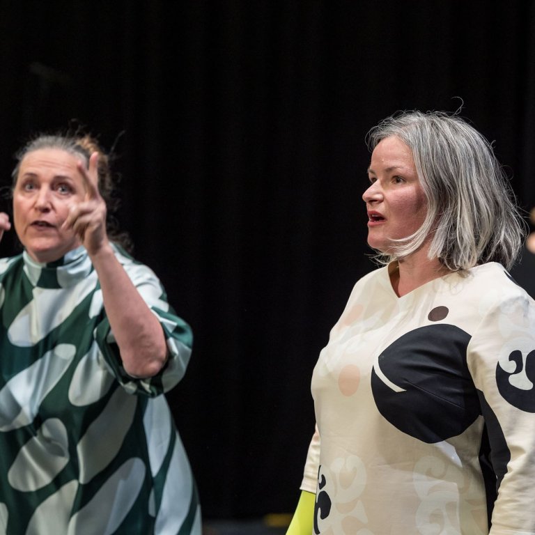 Ein Theaterabend über Humanismus, Würde und Tugend, Geschlechter und das weibliche „Neinsagen“. Zwei Salzburger Erstaufführungen inszeniertmit Musik, Gebärden, Tanz, Sprachspiel und einer Portion Selbstironie.
