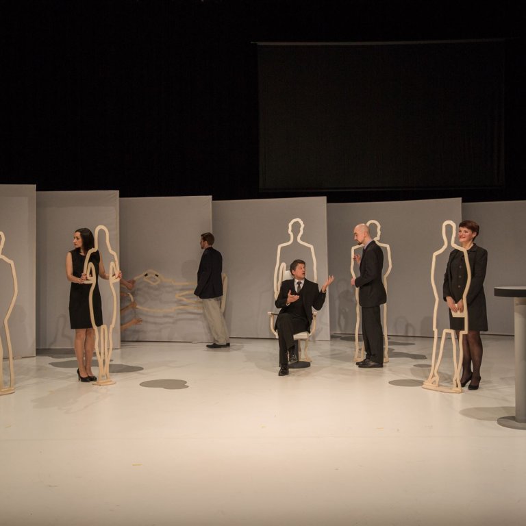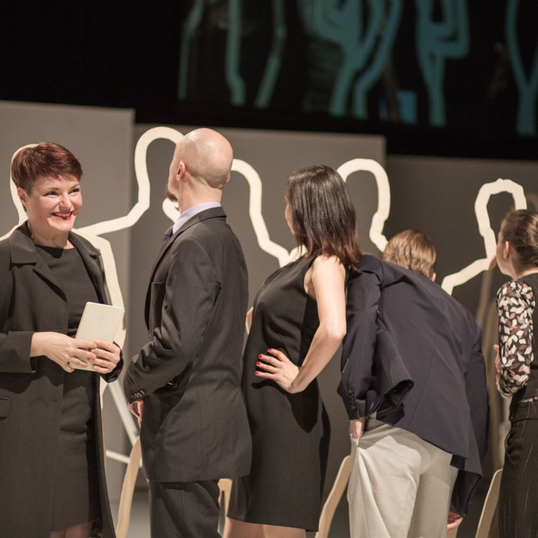Die aus Salzburg stammende Autorin Kathrin Röggla hat mit „wir schlafen nicht“ einen hochaktuellen, humorvoll-bissigen Text geschaffen, der die von Selbstzwang und Fremdausbeutung geprägte Arbeitsmaschinerie in Zeiten von Krisen und Pleiten präzise durchleuchtet. Ein sprechrhythmisch furioses Stück, bewegungschoreographisch in Szene gesetzt, das die Würde des Menschen zum Thema macht.