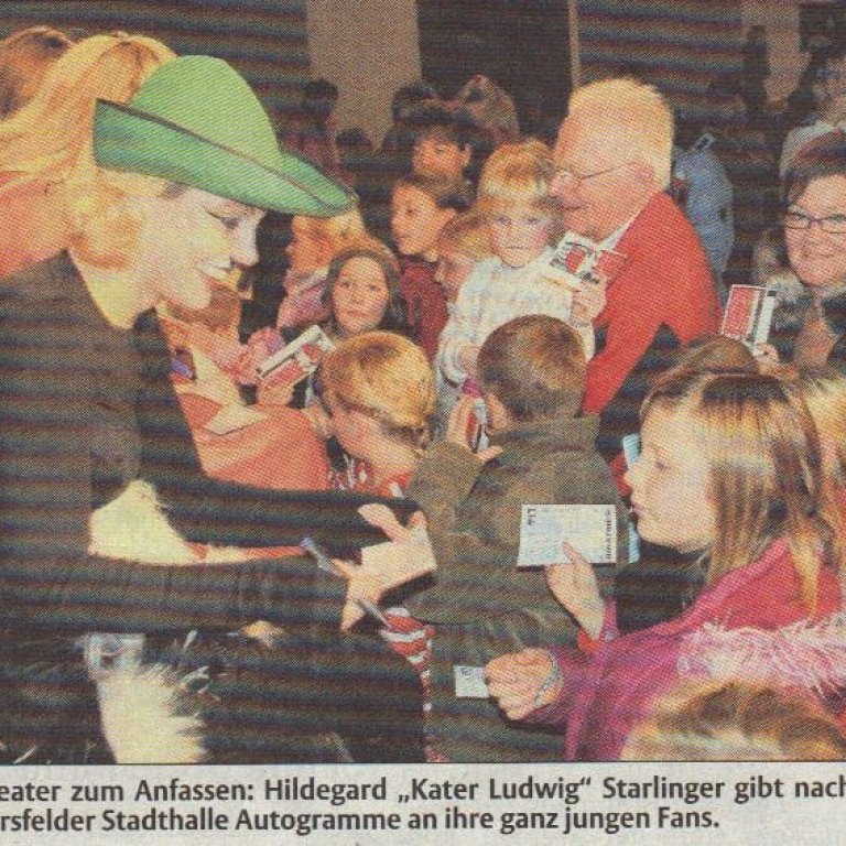 Theater zum Anfassen: Hildegard „Kater Ludwig“ Starlinger gibt nach der Aufführung in der Bad Hersfelder Stadthalle Autogramme an ihre ganz jungen Fans.