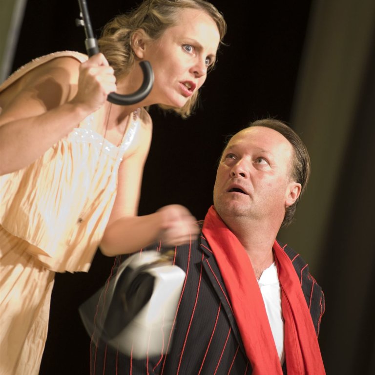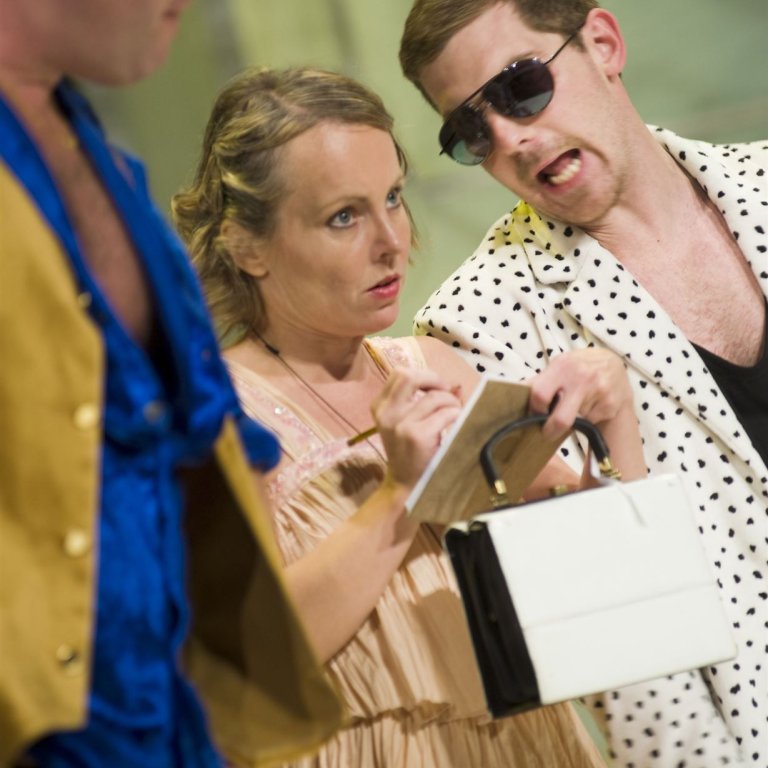 Köstlich Hildegard Starlinger als Gonzala: Die Dame mit Sonnenschirm macht sich gerne Notizen in ihrem Tagebuch, und das wird wohl mal eine Chronique scandaleuse…