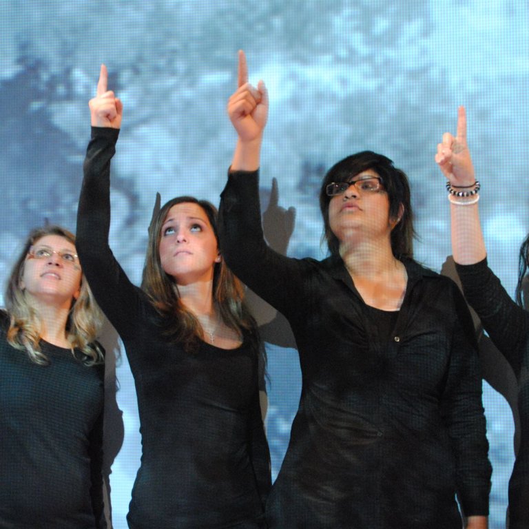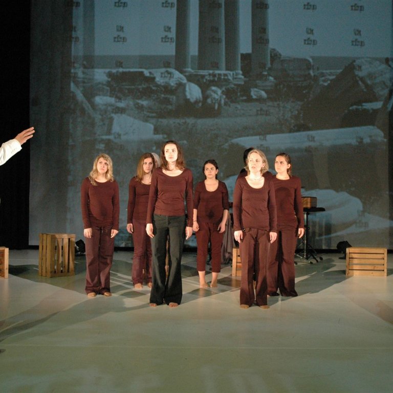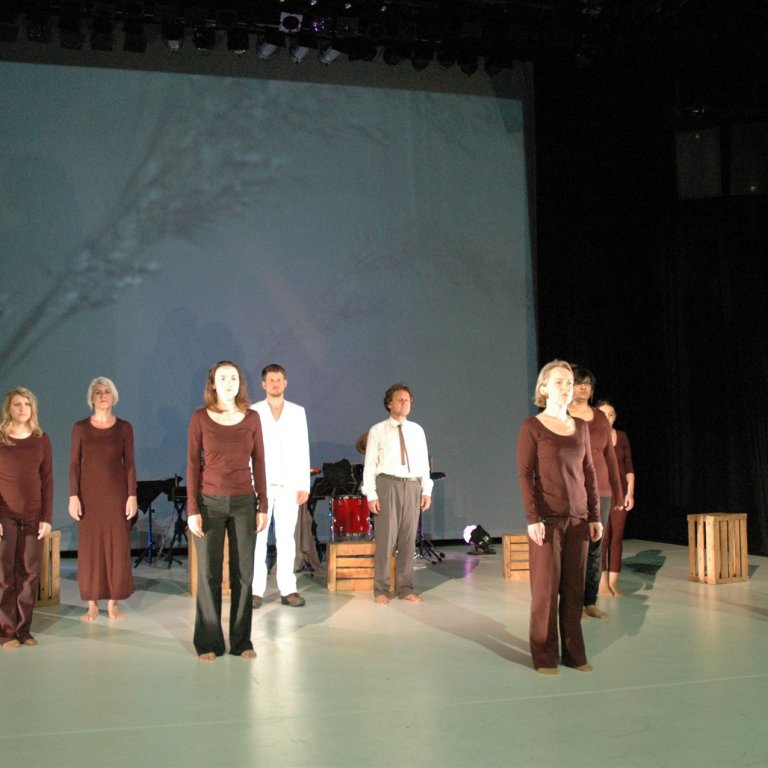 …Die hörenden Schauspieler sprechen Wort für Wort laut mit, was der Chor auf Gebärdensprache sichtbar macht. Das verleiht den gesprochenen Texten und auch der gesamten Inszenierung eine etwas verfremdende, faszinierende Ästhetik…