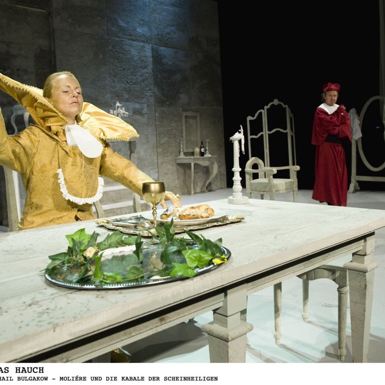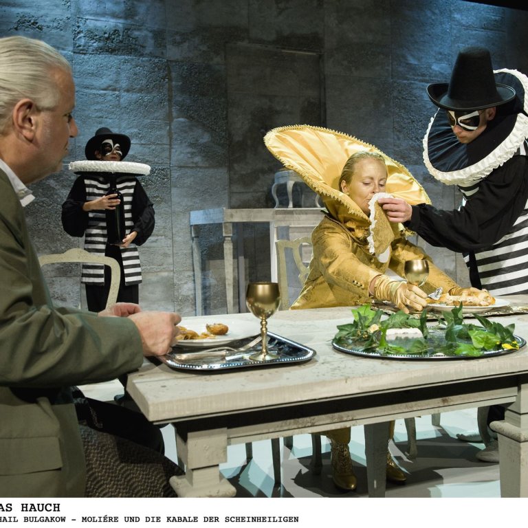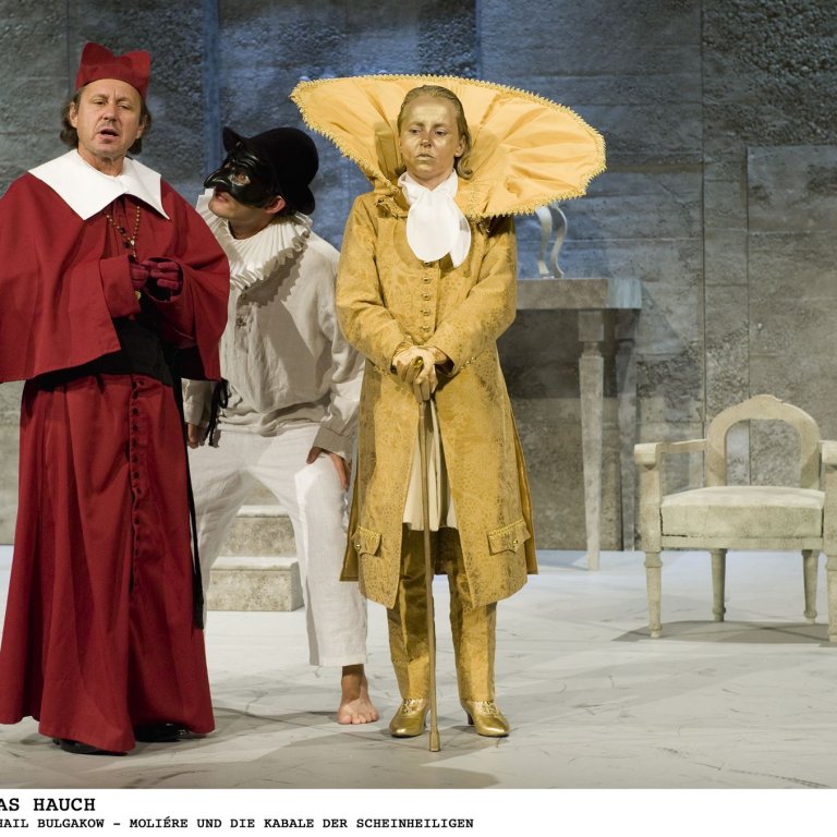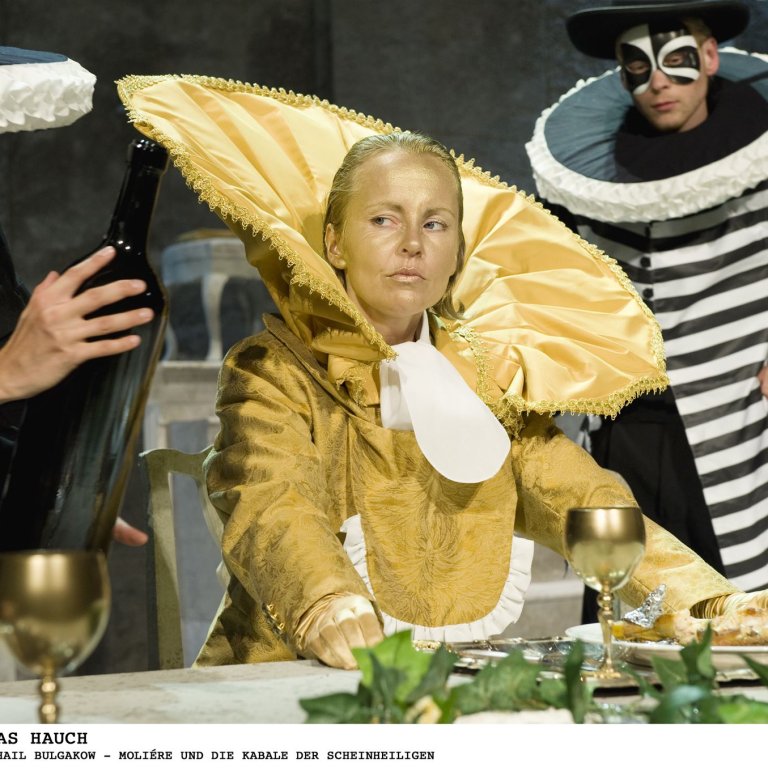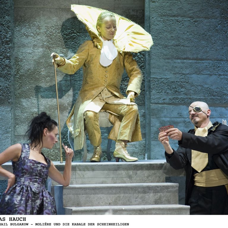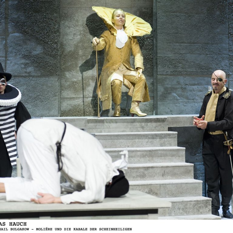 Vor allem die Episoden rund um König Ludwig XIV, der mit goldgefärbtem Gesicht distanziert wie ein Pharao wirkt, erscheinen in Choreographien.