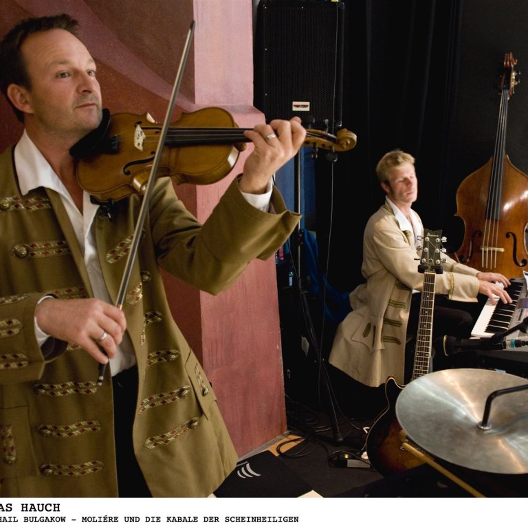 …Der König kann sich eindrucksvoll in Szene setzen… Hildegard Starlinger strahlt golden als König Ludwig XIV,… Nach der Vorstellung, die heftig umjubelt wurde, gab es Blumen…